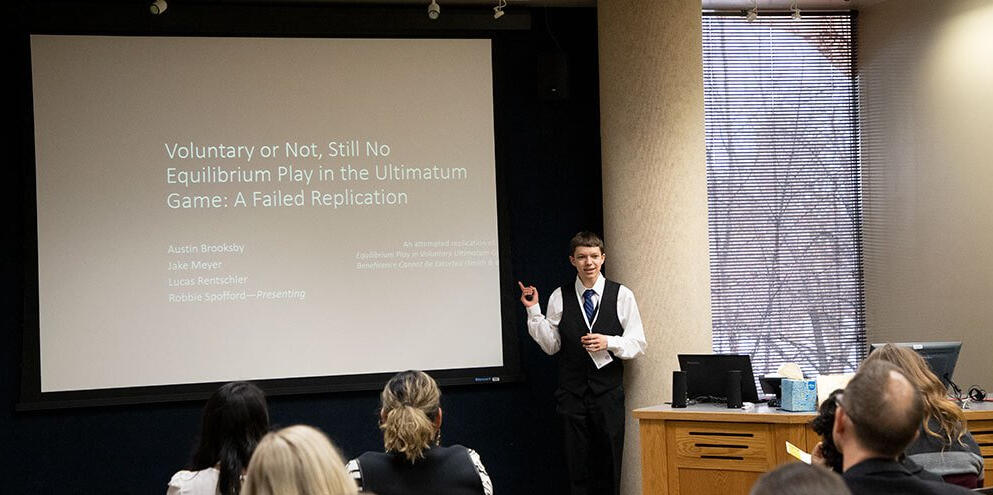 "Voluntary or Not, Still No Equilibrium Play in the Ultimatum Game: A Failed Replication," solo presentation on research with Austin Brooksby, Jacob Meyer, and Lucas Rentschler (Early 2020)